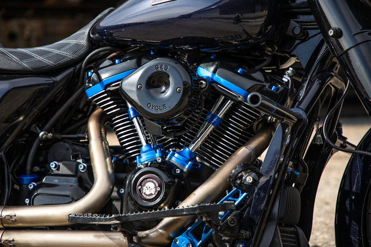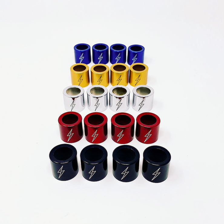 Billet aluminum CNC machined pushrod spring covers. Raw, anodized or chromed with laser engraved lightning bolts. These are not the die cast cheapo's like you see from some aftermarket companies. High quality products made in the USA. Fits all model Harley Davidson motorcycles.